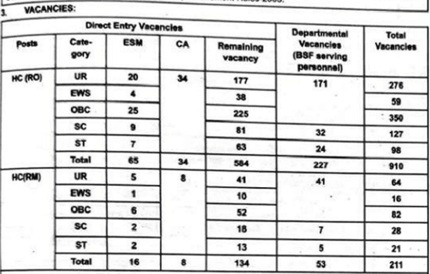Vacancy Details of BSF Head Constable Recruitment 2025