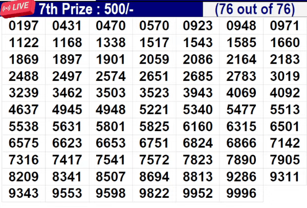 - 7th prize is Rs. 500