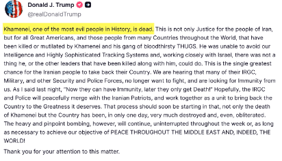 Reported Killing of Ayatollah Khamenei Triggers Rapid Escalation