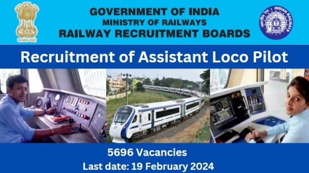 RRB ALP Recruitment 2024: The Railway Recruitment Boards (RRB) under the Government of the Ministry of Railways have released a notification for the post of Assistant Loco Pilot. In this post there are total 5696 vacancies. Indian Citizen who have passed the minimum of Matriculation and ITI are eligible to apply for the post. Interested and eligible candidate who are interested for the post van apply online www.recruitmentrrb.in or they can apply here. The details are given below. The last date for the online application is 19 February 2024.